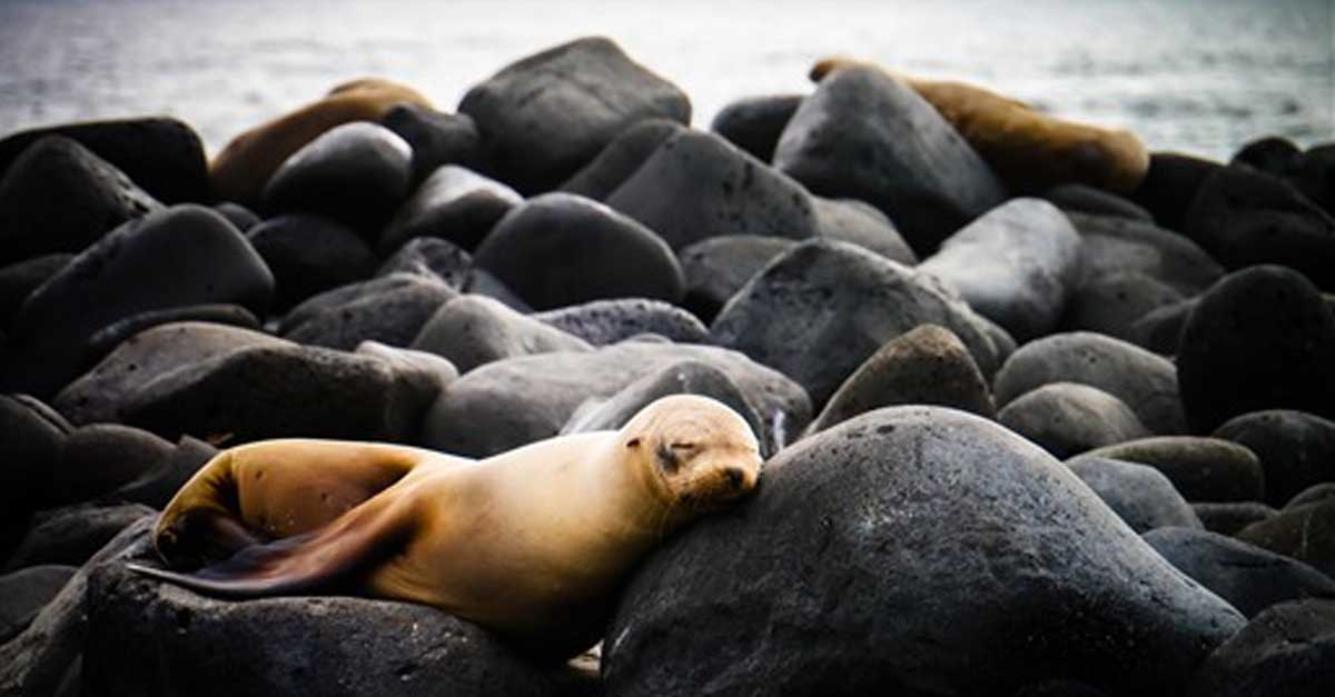 Sea lions sleep in a variety of positions, sometimes with their flippers tucked underneath. Clearly it is not easy to get comfortable when you decide to sleep on a rock.