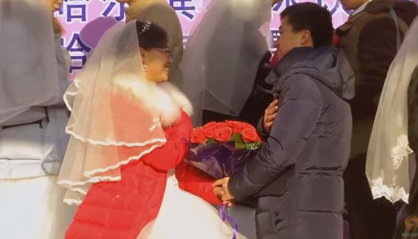 Couples wed in mass nuptials at China ice festival