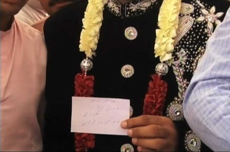 Groom Naveed Ahmed, in his wedding attire, headed towards the polling station while dhol (drum) beats resounded across the streets and his friends and relatives danced around him.