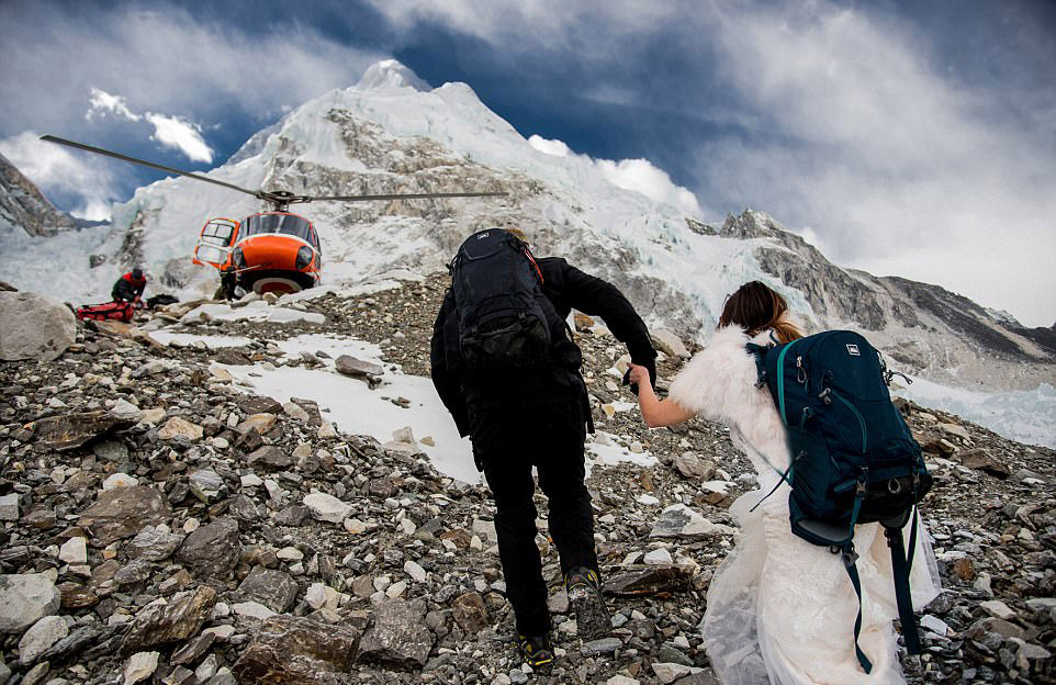Specialist adventure wedding photographer Charleton Churchill filmed the implausible journey of the couple and took numeorus breathtaking photos.
