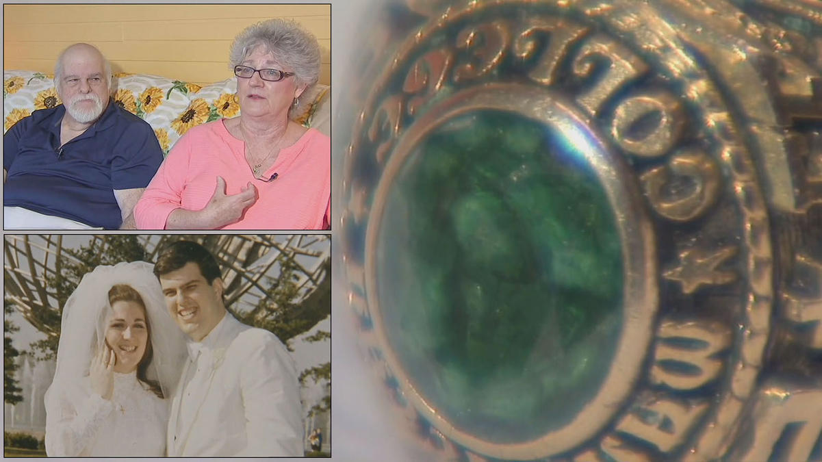 DENNIS, Mass. (AP) — A college class ring lost in the surf at a Massachusetts beach nearly half a century ago is back on the finger of its owner.