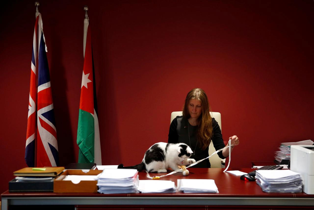 AMMAN (Reuters) - At the British embassy to Jordan, a former rescue cat is settling into his new position as chief mouser - as a traditional well established in the ministries of London goes global.