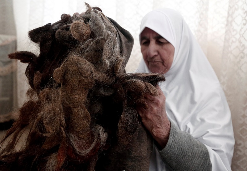 “I like my hair and I hate to throw it away. Even when Icomb my hair or wash it I keep the hair that falls off,” the 82-year-old told Reuters at her home in Tubas in the West Bank.