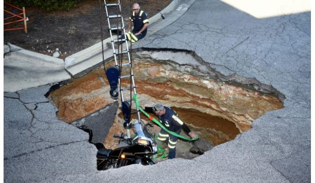 AUGUSTA, Ga. (AP) — A motorcyclist got the ride of his life in Georgia when a sinkhole opened up in a parking lot and swallowed him and his bike.