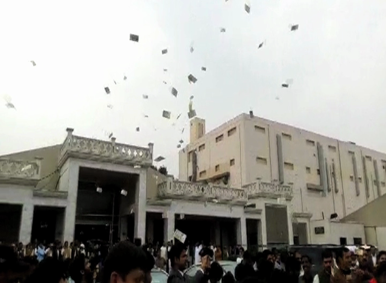 The relatives of the groom Naeem showered currency notes ranging from Rs10 to Rs5000.