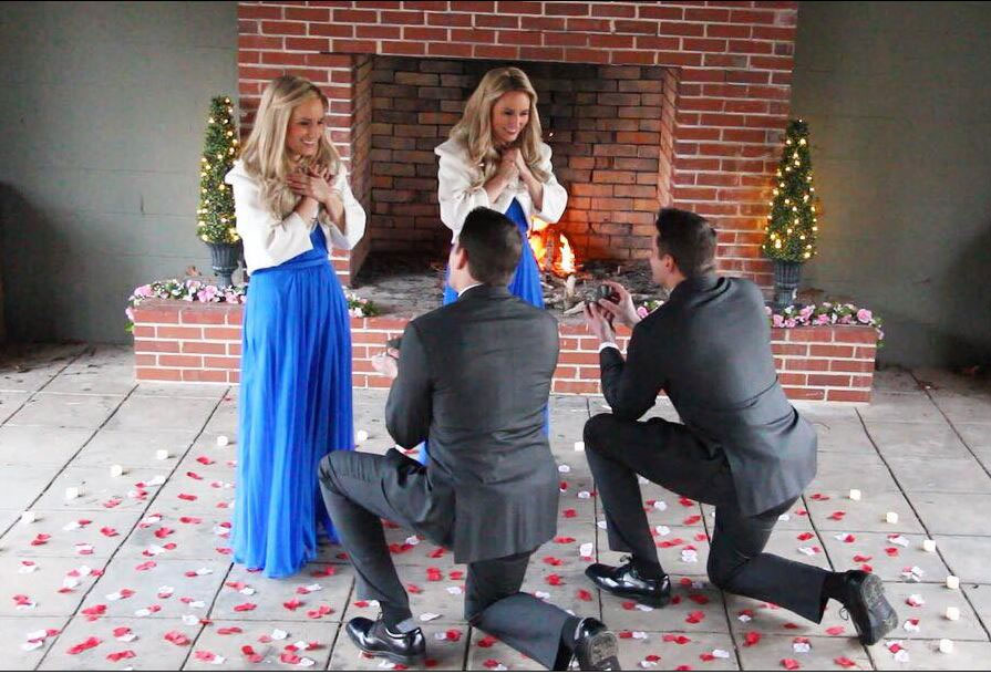 The Lynchburg News & Advance reports Jeremy and Josh Salyers proposed to Briana and Brittany Deane on Feb. 2 at Virginia’s aptly named Twin Lakes State Park.