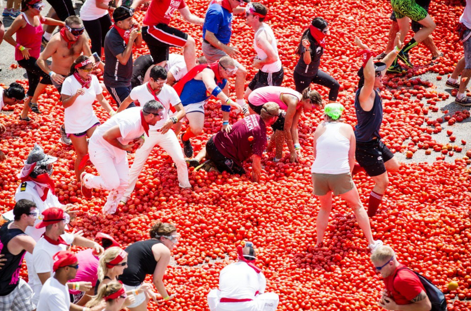 A fire cracker will signal the start of the massive food fight at 11 a.m. (0900 GMT) which lasts exactly one hour, six trucks loaded with over-ripe tomatoes will drive through the small town’s main street providing ammunition for festival-goers.