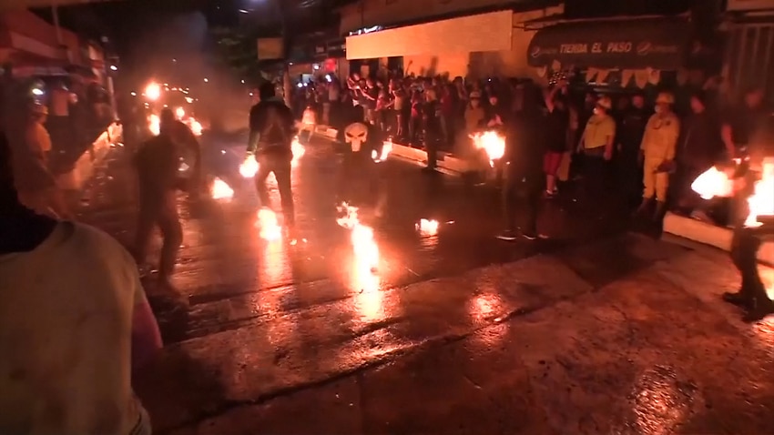 Nejapa resident Carlos Rivera, dressed in fatigues and ready for the fireball battle, explained, "Our grandparents, our great-grandparents told us different stories about this event.