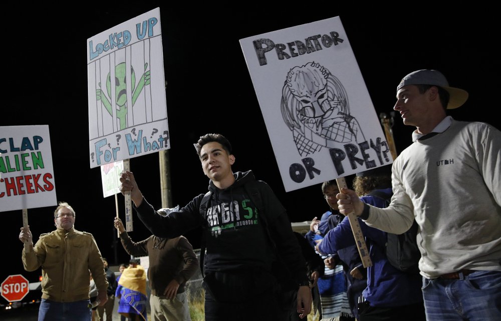 The sheriff in neighboring Nye County reported that about 40 people dispersed after “heated warnings” from officers about 3 a.m. Friday near a base gate not far from a conspicuously green “Area 51 Alien Center” about 90 minutes’ drive west of Las Vegas.