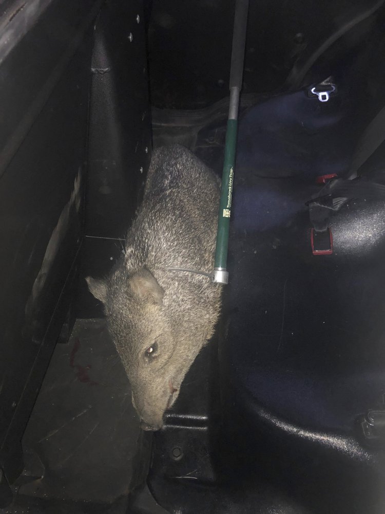 PHOENIX (AP) — A baby javelina is recovering after a jaunt on a Phoenix freeway. The Arizona Department of Public Safety says the young javelina was one of two that brought traffic on State Route 51 to a standstill Monday afternoon.
