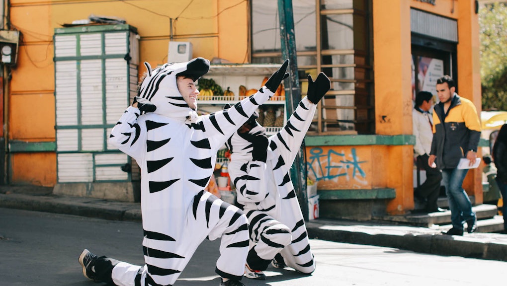 These zebras are part of a road-safety awareness campaign called Zero Urban Educators. They scold drivers for any transgressions in a humorous and positive way.