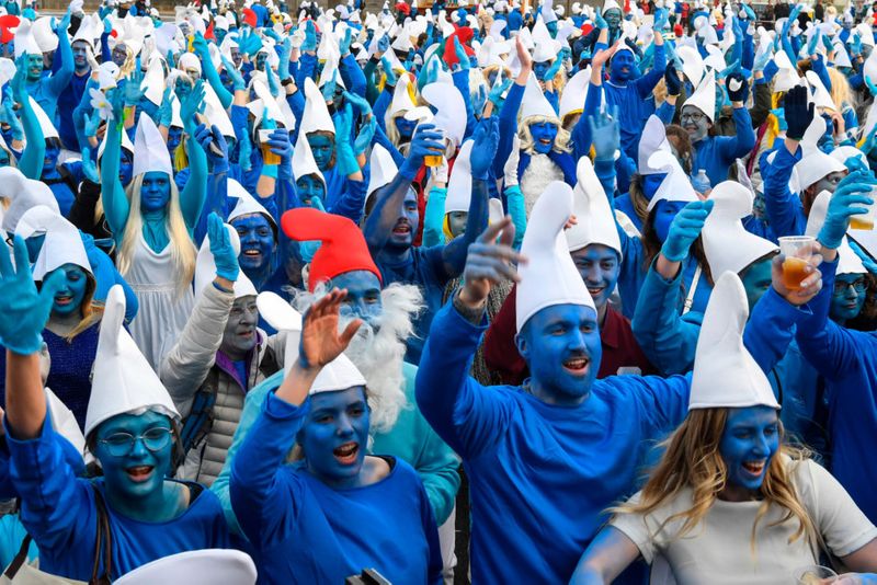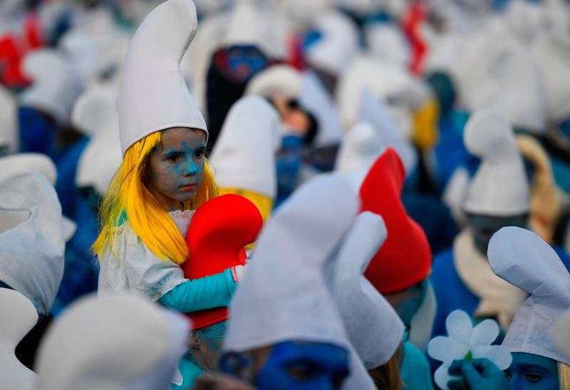 Around 3500 people set aside fears of the coronavirus to dress up as the characters, which come from a Belgian comic franchise