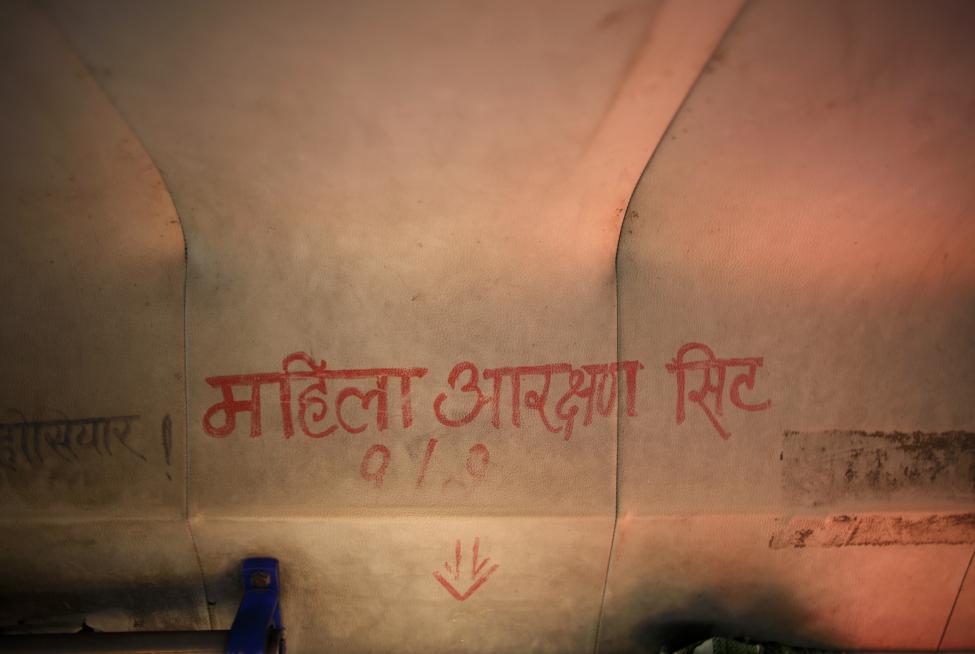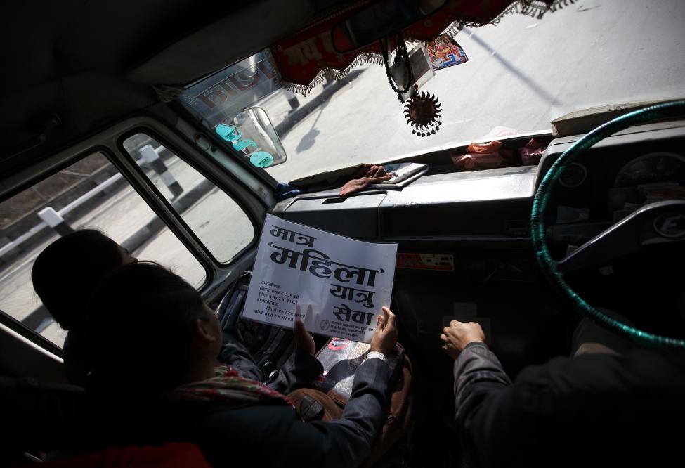 Seats Reserved for Women is written in Nepali inside a women-only bus in Kathmandu - Reuters