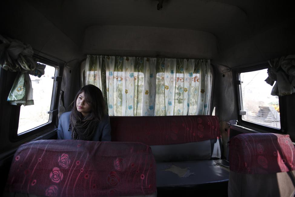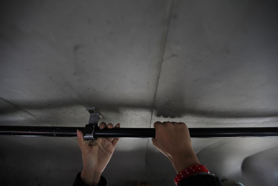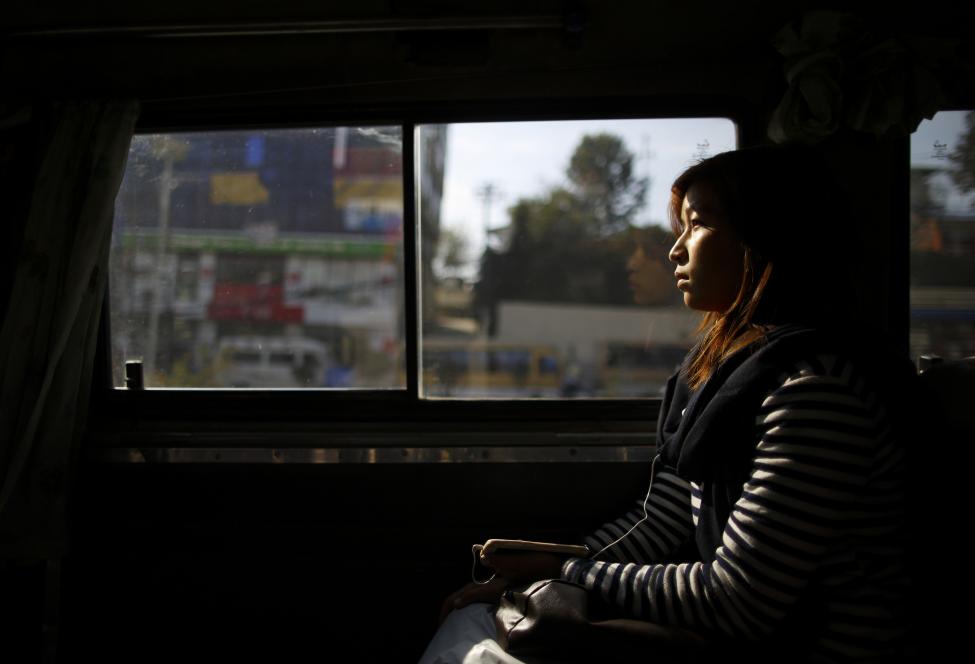 A woman rides a women-only bus as she returns from her college in Kathmandu - Reuters