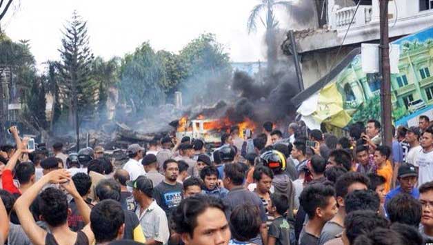 Officials warned the death toll could rise after the Hercules C-130 came down in a residential area of Medan, a city of two million on the island of Sumatra, leaving buildings severely damaged and cars reduced to flaming wrecks.