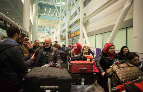 Canadians eager to show their support for the newcomers weren t deterred by the fact that they couldn t do so face-to-face as the refugees were processed in a secure area. A handful of people gathered at the international arrivals gate at Pearson airport bearing signs and gifts.