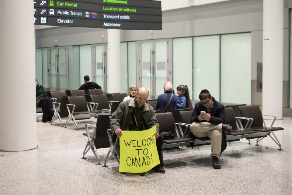 Andrew Harris, 51, said he wanted to counter the fearful messaging about Muslims that has circulated since the Paris attacks. He held up a large yellow sign that read "Welcome to Canada," saying that even if the arriving refugees don t see it, the positive words won t go unnoticed.