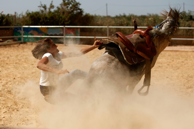 Majdal Shams (AFP) - The grey horse rears its head, rocking left and right, kicking its legs wildly. Sensing danger, Raja Kheir throws herself off and rolls on the ground.