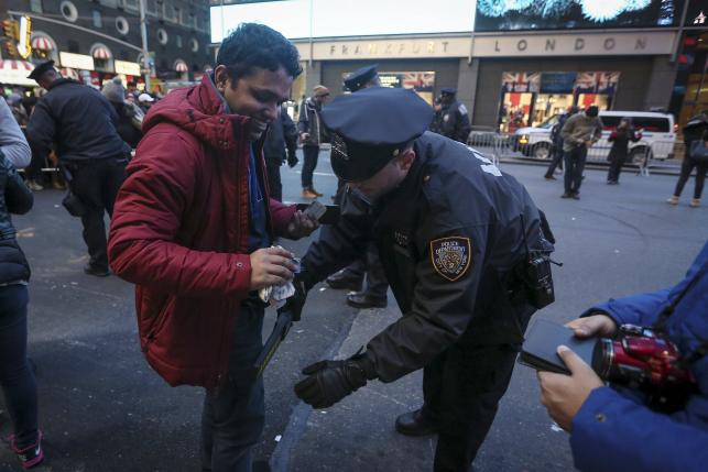 Before entering Times Square, visitors were required to pass through tight security checkpoints, with police stopping anyone from carrying backpacks and large bags while searching smaller bags and scanning people with metal detectors.