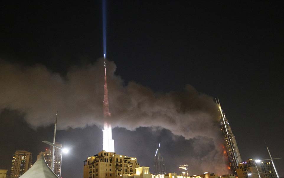 A huge fire ripped through a luxury Dubai hotel Thursday night, injuring 16 people, just a few hours before the emirate celebrated the new year with a spectacular fireworks display nearby.