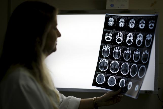 Child Neurologist Vanessa Van Der Linden observes the X-ray of a baby s skull with microcephaly at the hospital Barao de Lucena in Recife, Brazil, January 26, 2016