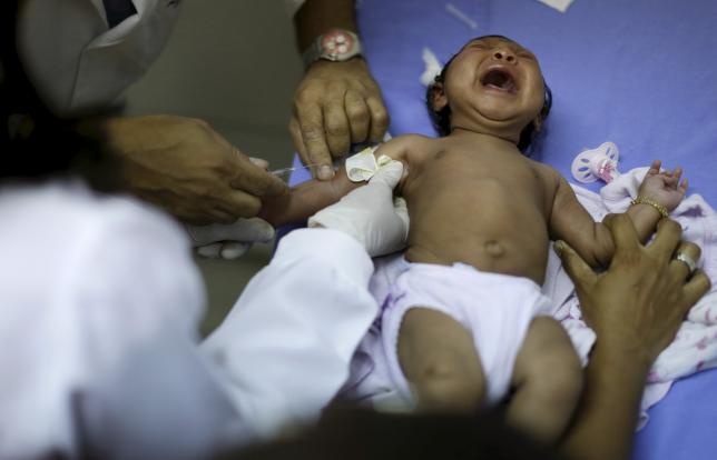 Oswaldo Cruz Hospital staff prepare to draw blood from baby Ludmilla Hadassah Dias de Vasconcelos, who has microcephaly, at the Oswaldo Cruz Hospital in Recife, Brazil, January 26, 2016
