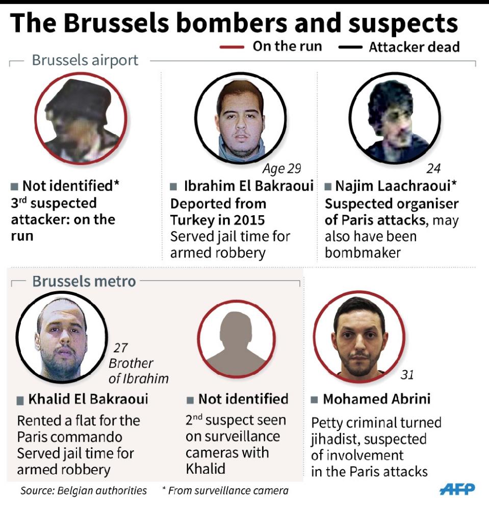 The Brussels bombers and suspects on the run (AFP Photo)