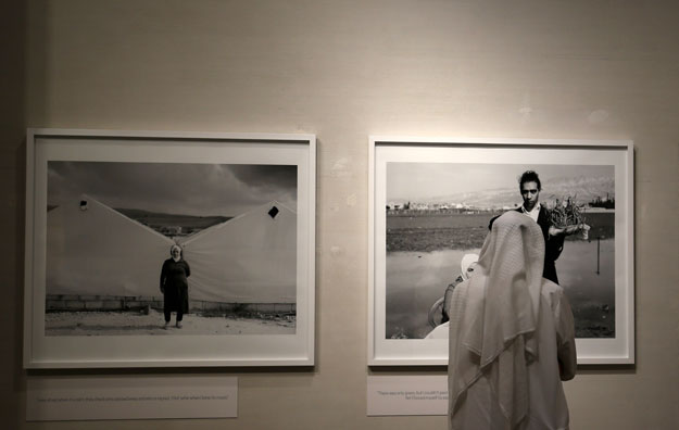 The show, "If I leave, where will I go?", also displays images by Syrian director Omar Imam and late French-Moroccan photographer Leila Alaoui.