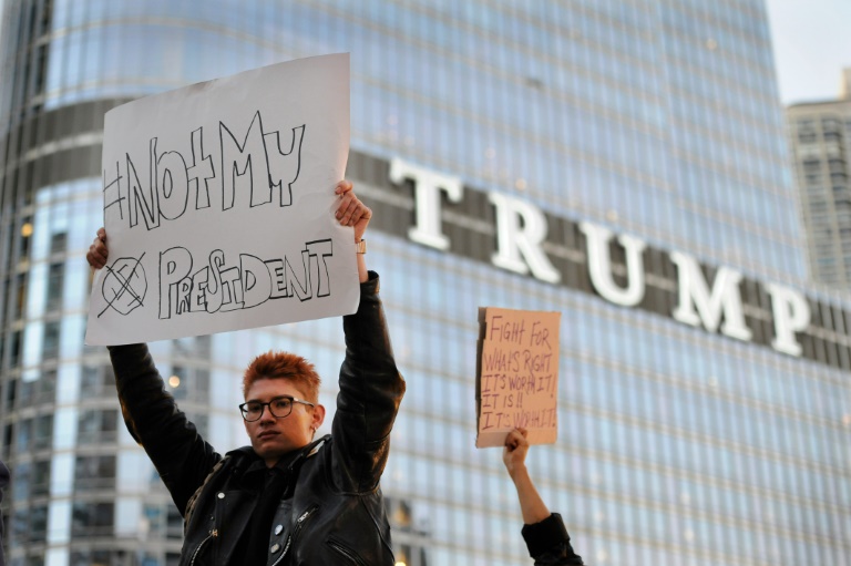 People take part in a protest near the Trump tower, against President-elect Donald Trump, in Chicago, Illinois © AFP Paul Beaty