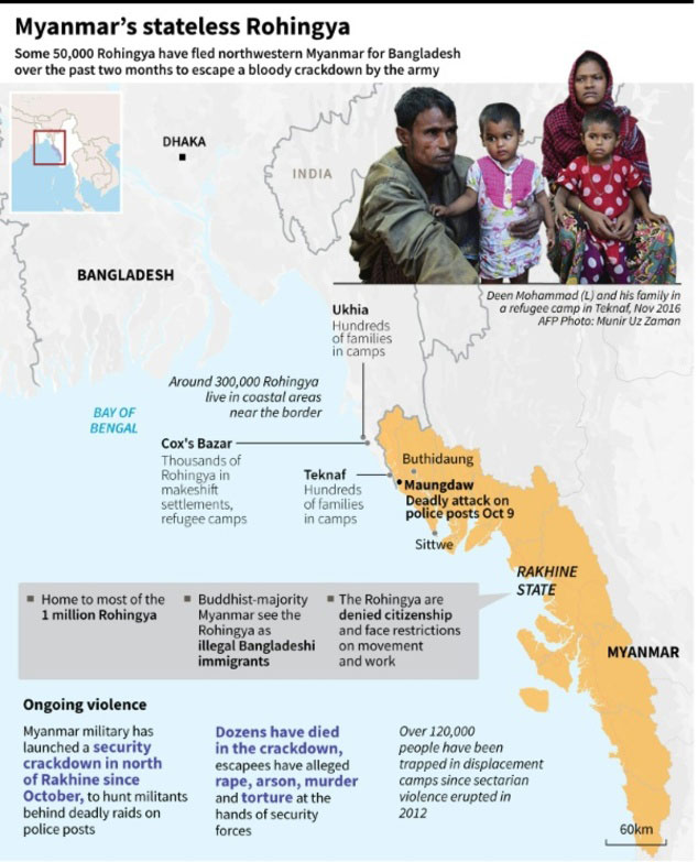 Most of those who fled to Bangladesh live in squalid conditions in refugee camps in Cox’s Bazar district, which borders Rakhine state and is home to the country’s biggest tourist resort.
