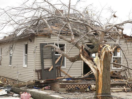 About 90 miles (145 km) southwest of Chicago, in LaSalle County, Illinois, a man was killed by a falling tree when a tornado struck at around 5 p.m. on Tuesday, authorities said.