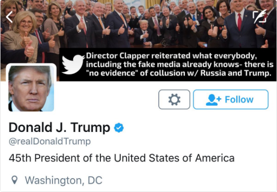 After the statements were given, Trump tweeted, “Director Clapper reiterated what everybody, including the fake media already knows- there is "no evidence" of collusion w/ Russia and Trump.”