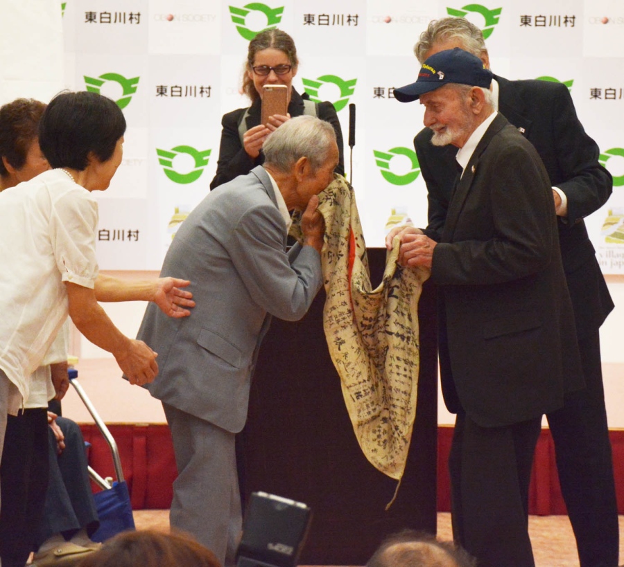 The war veteran traveled after 72 years, since Japan surrendered, to a remote village in Japan and returned the calligraphy-covered Japanese flag to the family of Sadao Yasue.