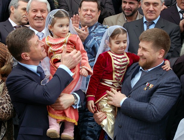 Chechen President Ramzan Kadyrov (R) and Dmitry Kozak, special representative of the Russian president in the Southern Federal District hold children after an approval by Chechen parliament in Grozny, 02 March 2007. Photo: AFP