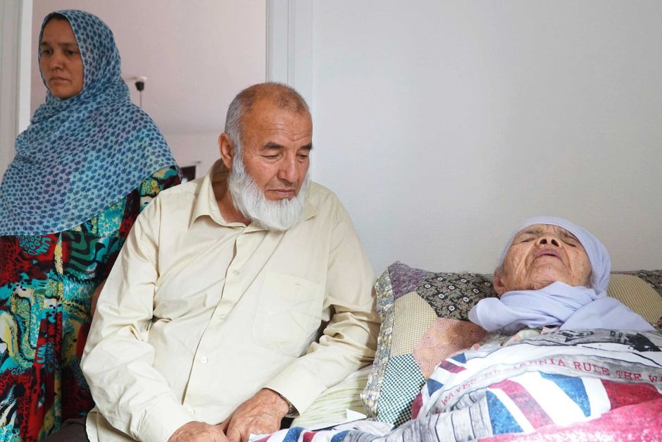 Bibihal Uzbeki is watched by her son Mohammadollah and daughter-in-law Ziba. Photo: AP