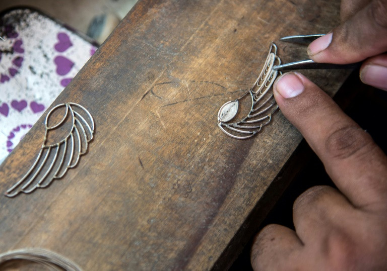 The art of filigree, a typical technique of Colombian jewellery, was brought to the country by the Spaniards who in turn learnt it from the Arabs in Andalucia. Photo: AFP