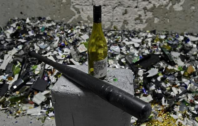 Baseball bat is the prime tool used to destroy several items including glass bottles. Photo: AFP