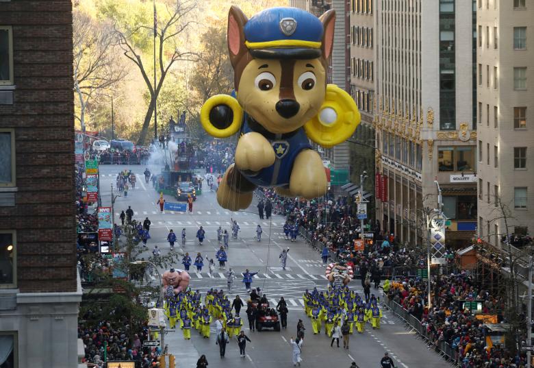 Paw Patrol’s Chase balloon make its way down 6th Ave. Photo: Reuters