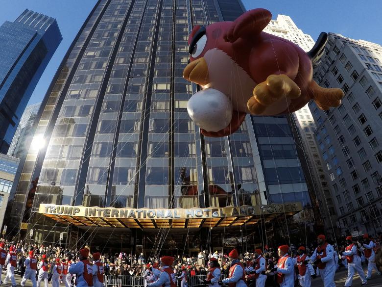 Angry Birds’ Red is carried down Central Park West. Photo: Reuters