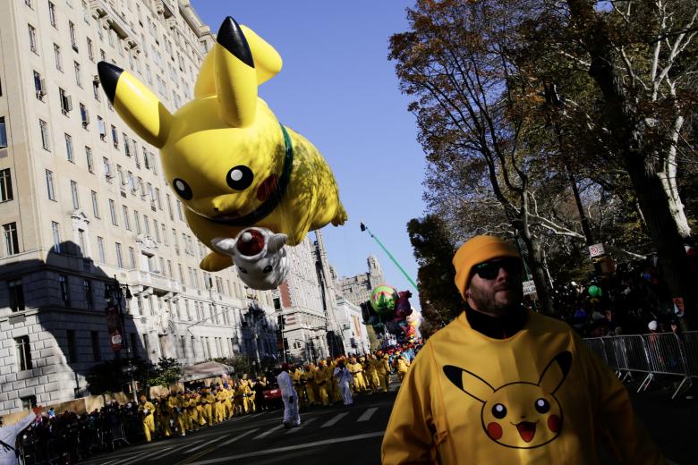 Pikachu is carried down Central Park West. Photo: Reuters