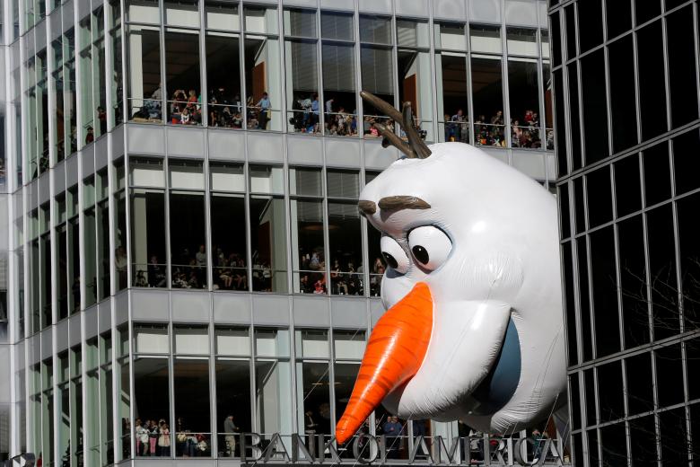 Frozen’s Olaf balloon is carried down 6th Avenue. Photo: Reuters