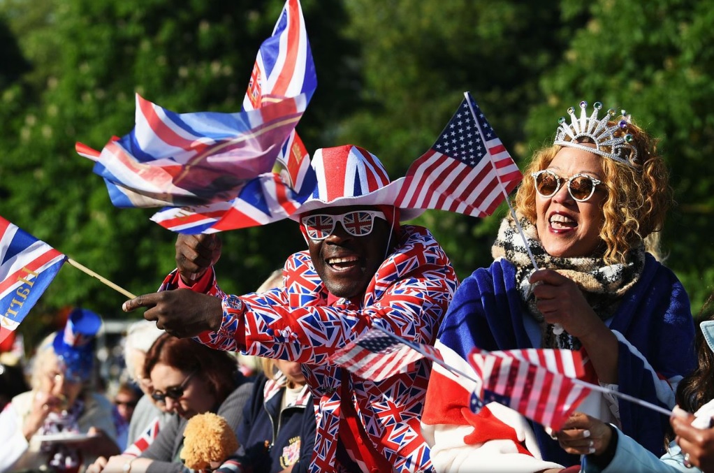 Waving American flags and Union Jacks, fans celebrate in Windsor. Photo: Getty