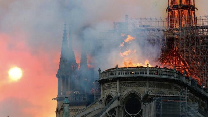 In a tweet he expressed the "emotion of a whole nation" on seeing Notre-Dame ablaze.