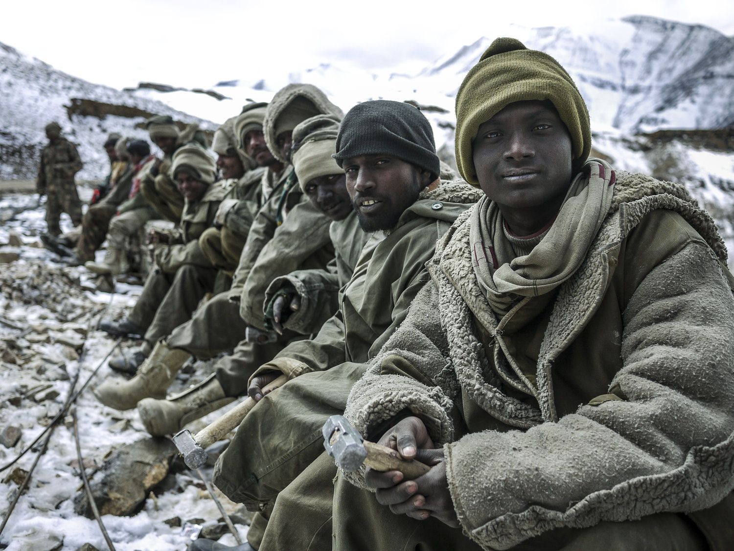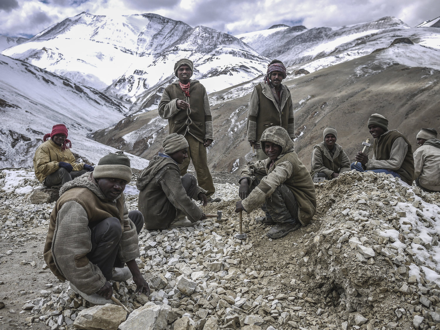 They toil six days a week, using only their bare hands, shovels and old sacks to move rocks and sand, with the help of local Ladakhi workers, some of them women.
