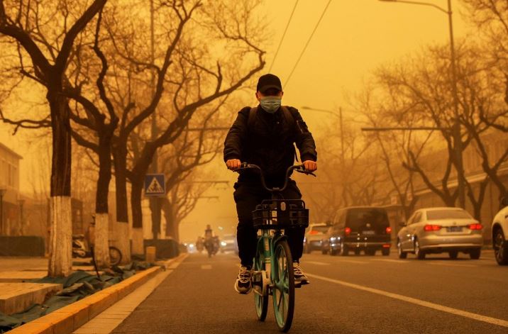 Chinese weather agencies blamed the poor air quality on a sandstorm sweeping across northern China from northern Mongolia, where authorities there said it had left several dead, before being carried south by winds and reducing visibility in Beijing to less than 500 metres.