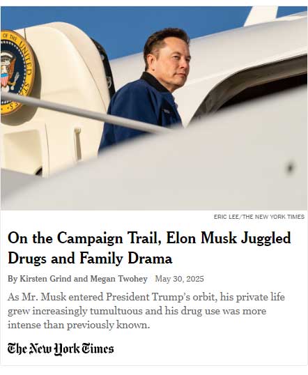 The article also described Musk traveling with a pill organiser and exhibiting erratic public behavior, including a Nazi-style salute during a January rally celebrating Trump’s return to the White House.