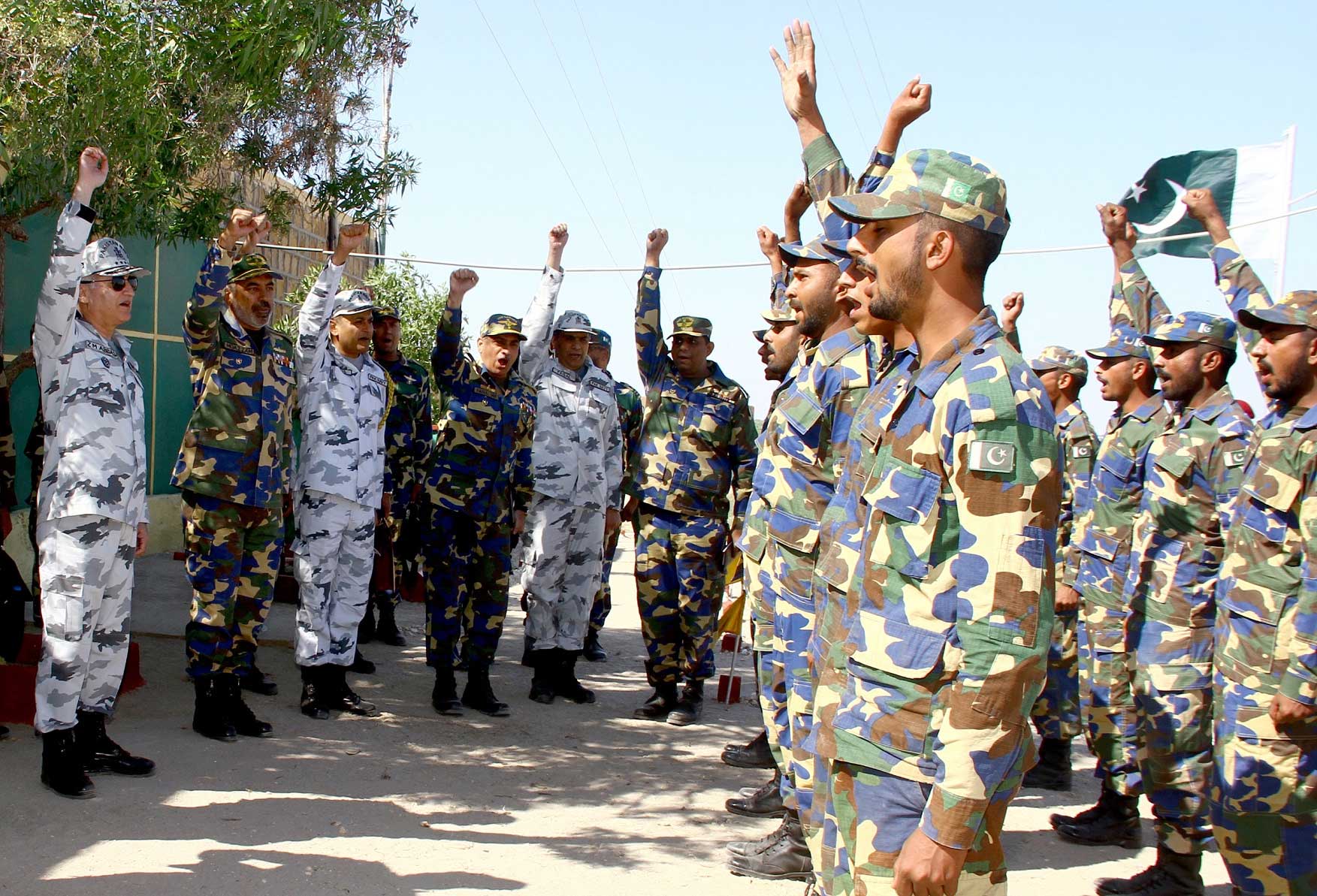 Admiral Zafar Mahmood Abbasi interacted with troops deployed at the forward posts and appreciated the morale and dedication of the troops performing their duties in harsh topographical conditions of the Creeks Area. While highlighting the importance of the sacred responsibility the nation had entrusted upon them, the Naval Chief emphasized the importance of high moral values, physical standards and rigorous training.