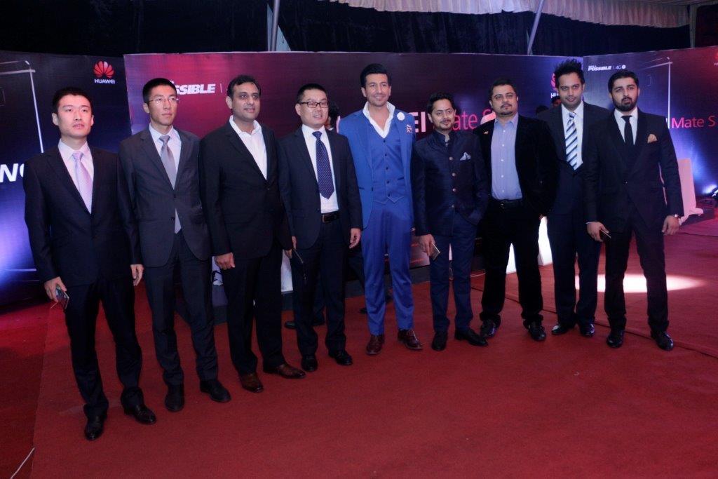 Mr. Shawn, GM Huawei Devices with Mr Rashid, Retail Manager Huawei, Mr Martin, Account Manager Huawei, Mr. Viqar Ali Khan, Event host, Mr Ifrahim, CEO Insights, Humais and Salman Javed, Manager Marke
