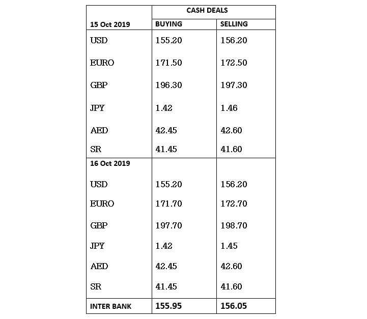 Currency rates in Pakistan - 16 October 2019