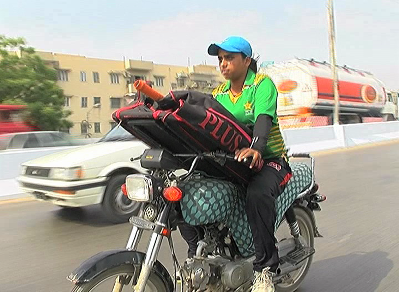 KARACHI (Dunya News) – Determined cricketer Sana Urooj has found a way to reach her destiny by travelling on motorcycle in Karachi.